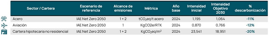 Posteriorment, el Consell d'Administració de l'entitat ha ampliat els sectors amb objectius de descarbonització i, d’aquesta manera, el març del 2025 ha fixat objectius per al sector de l'acer, de l'aviació i la cartera hipotecària no residencial prenent com a referència el càlcul de la petjada de carboni de les carteres finançades el 31/12/2024.