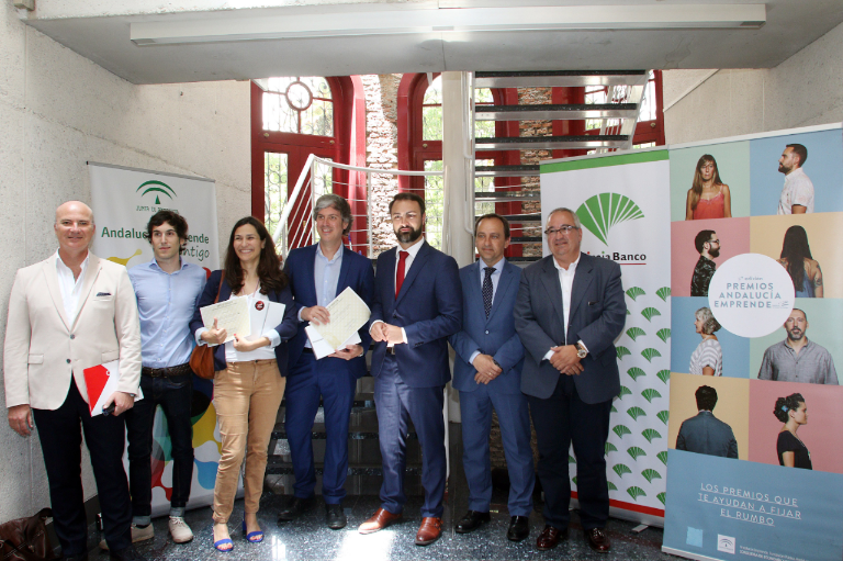 El acto de fallo y entrega de estos galardones, que ha tenido lugar en el Centro Andaluz de Emprendimiento (CADE) del Puerto de Málaga, ha contado con la asistencia de Agustín Sánchez, Director de Área de Málaga Centro de Unicaja Banco, en representación de la entidad financiera, y ha estado presidido por Mariano Ruiz, Delegado territorial de Economía, Innovación, Ciencia y Empleo en Málaga de la Junta de Andalucía y Gabriel Clavijo, Director provincial de Andalucía Emprende.