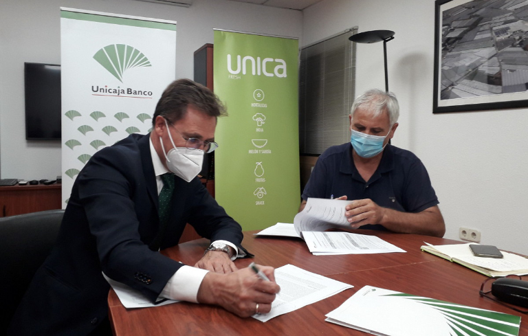 Unicaja Banco ha renovado un año más el acuerdo de colaboración que mantiene con la Sociedad Cooperativa Andaluza (SCA) El Grupo de Granada, por el que la entidad financiera pone a disposición de los más de 600 agricultores que la integran un servicio financiero integral específico con condiciones favorables, dirigido a facilitar y mejorar el desarrollo de su actividad, especialmente ante la crisis económica derivada de la pandemia del COVID-19.