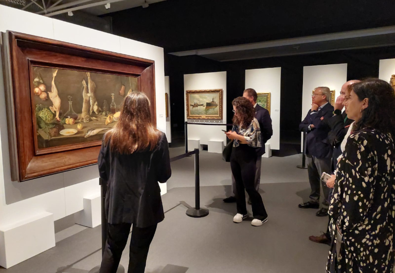 Entre las obras de esta muestra, dos se encuentran cedidas para su exposición permanente en el Museo de Bellas Artes de Asturias (‘Víctimas de fiesta’, de Darío de Regollos, y ‘Bodegón de Lastres’, de Telesforo Fernández Cuevas y García de la Mata).