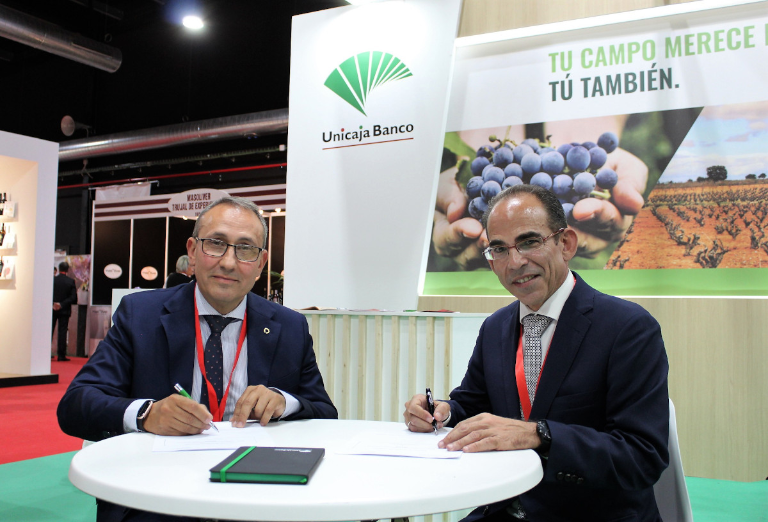El Director Territorial de Banca Comercial de Unicaja Banco, José María Cortés, y el Director de Cooperativas Agro-alimentarias de Castilla-La Mancha, Juan Miguel del Real, han firmado este acuerdo, en el marco de la Feria Nacional del Vino FENAVIN, que se ha celebrado recientemente en Ciudad Real. El objetivo es aportar recursos y servicios financieros que permitan a los asociados abordar proyectos que faciliten el desarrollo de sus actividades para ayudarles a ser más competitivos en el mercado.