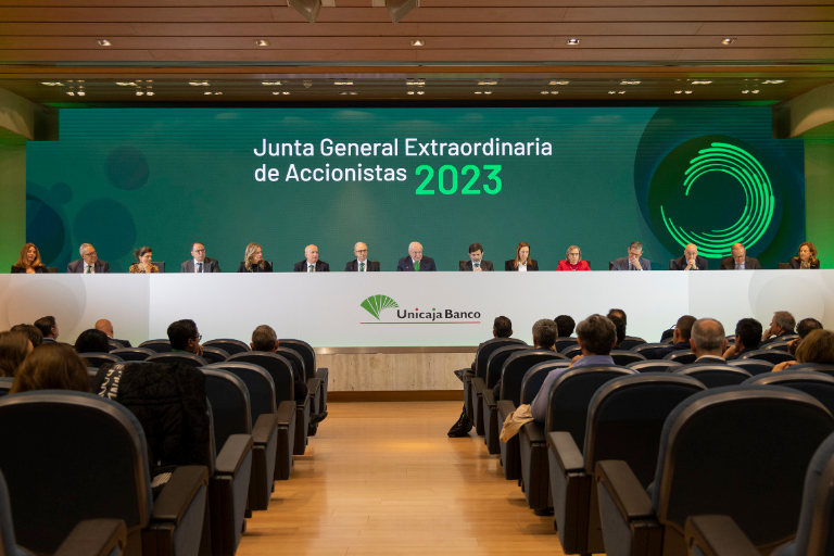Unicaja Banco ha celebrado hoy en Málaga Junta General Extraordinaria de Accionistas, con la que se ha ratificado la renovación de su Consejo de Administración llevada a cabo en los últimos meses. Así, la Junta de Accionistas ha aprobado la ratificación del nombramiento del consejero delegado, Isidro Rubiales, con el 97,4% de los votos emitidos, así como la de la designación de cuatro consejeros independientes, Nuria Aliño, Antonio Carrascosa, Rocío Fernández e Inés Guzmán. También la Junta ha aprobado mantener temporalmente la vacante existente, para que pueda ser cubierta por un nuevo consejero independiente, cuyo proceso de selección se ha iniciado.