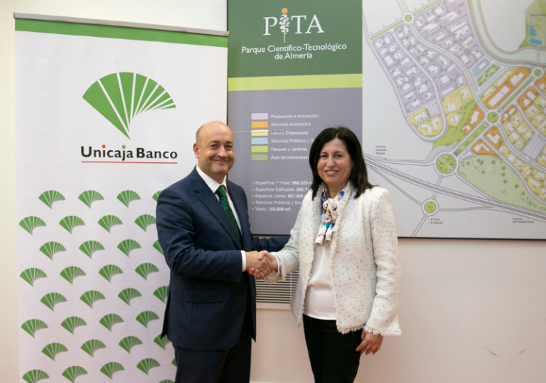 The collaboration agreement, recently signed by Unicaja Banco’s Regional Manager for Eastern Andalusia, Miguel Ángel Fernández, and by the General Manager of PITA, Trinidad Cabeo, reinforces the existing relationship between both institutions since the technology park was created, aimed at reaching the common goals of favouring the business fabric, facilitating the economic boost and supporting employment in Almeria.