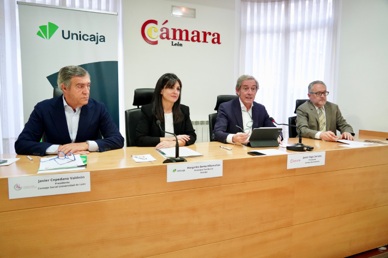 The presentation of this new project took place today, in an event attended by the president of the Chamber of Commerce of León, Javier Vega; the dean of the Faculty of Economics and Business of the University of León, José Ángel Miguel Ávila; the president of the Social Council, Javier Cepedano; and the regional manager of Unicaja in Castilla y León North, Marga Serna.