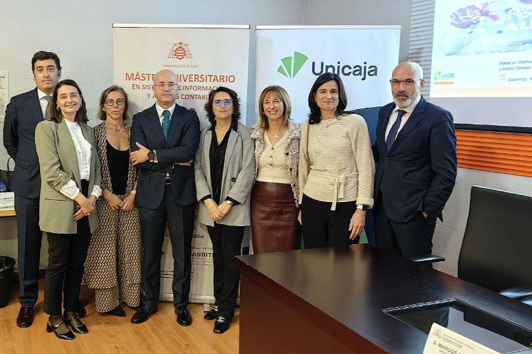 Unicaja vuelve a colaborar en una nueva jornada del Máster en Sistemas de Información y Análisis Contable (SIAC) de la Universidad de Oviedo, que se ha celebrado este miércoles, en el Salón de Grados de la Facultad de Economía y Empresa.