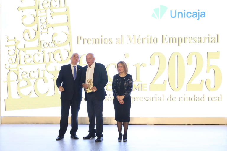 Unicaja ha patrocinado el Premio a la Expansión Nacional 2025, que ha sido entregado a la empresa, Veimancha, S.A., por parte de la directora territorial de la entidad en Castilla-La Mancha, Almudena Noheda, junto al presidente de FECIR, Carlos Marín. Por parte de Unicaja, asimismo, han asistido el director de Banca de Empresas de Castilla-La Mancha y Extremadura, Ignacio González Ascarza; la directora de Zona de Ciudad Real, Rocío Villa; y el director de Empresas Ciudad Real, Pedro Bachiller.