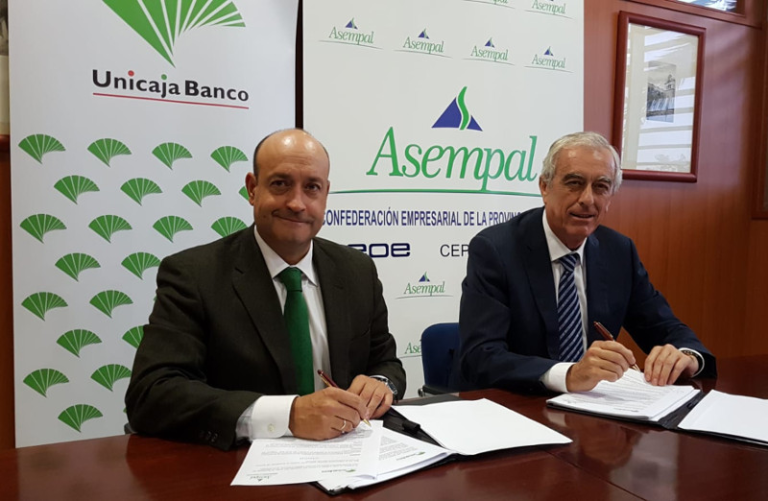 Unicaja Banco y la Confederación Empresarial de la Provincia de Almería (Asempal) han firmado un nuevo acuerdo de colaboración por el que la entidad facilita condiciones financieras favorables a las empresas asociadas a esta organización.