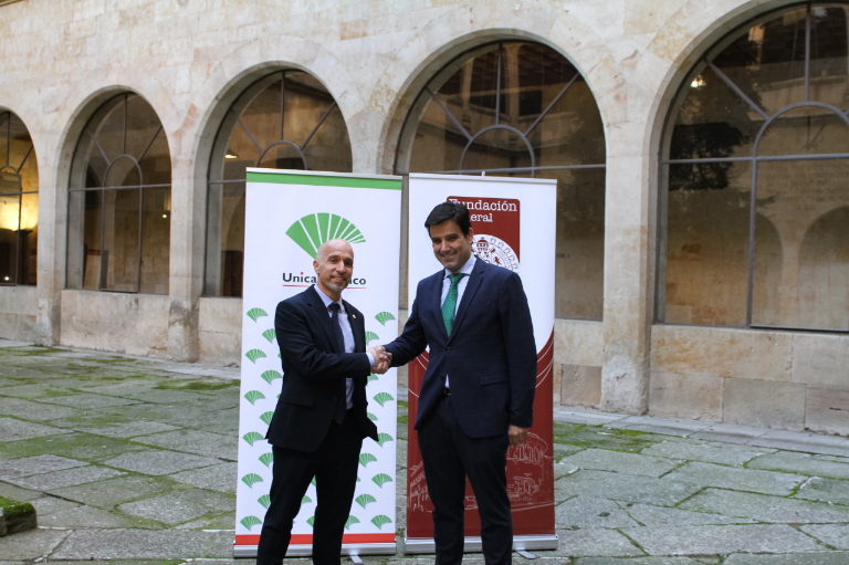 Unicaja Banco ha renovado su colaboración con la Universidad de Salamanca, continuando con su apoyo al Programa de Empresas Amigas que gestiona la Fundación General, una institución que tiene, entre sus objetivos, establecer cauces permanentes entre la Universidad y las empresas. El acuerdo ha sido rubricado por el Director Gerente de la Fundación, Óscar González Benito, y el Director Territorial de Castilla y León Sur de Unicaja Banco, Manuel Rubio.