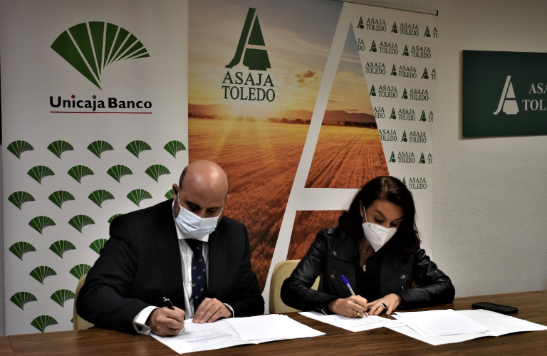 El Director Territorial de Banca Comercial de Unicaja Banco en Castilla-La Mancha, José Ignacio Martínez, y la Presidenta de Asaja Toledo, Blanca Corroto, firmaron este acuerdo, a través del cual los asociados a esta organización podrán contar con todos sus medios y personal técnico para formalizar su solicitud y resolver cualquier duda, además de acceder, mediante Unicaja Banco, al anticipo de la subvención, así como a otras ventajas financieras.