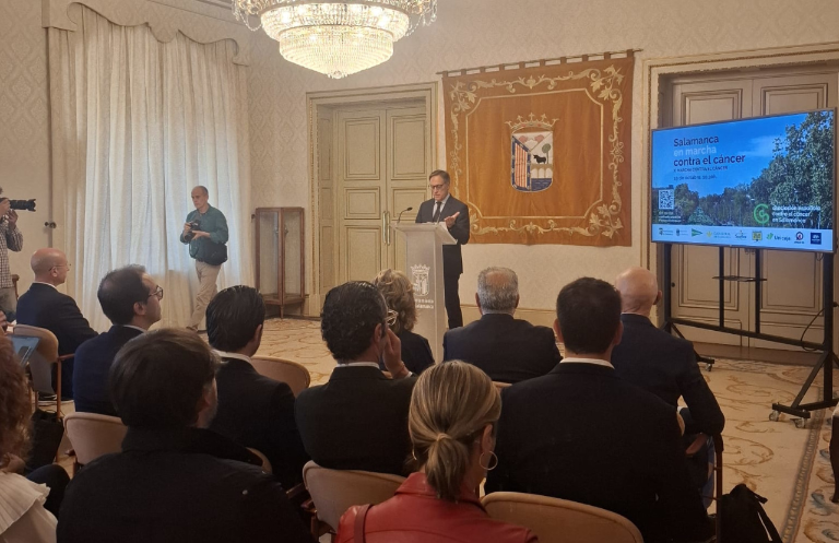 El evento ha sido presentado este martes en el Ayuntamiento de Salamanca, con la presencia del alcalde de la ciudad, Carlos García Carbayo, y el presidente de la AECC en Salamanca, Ángel Losada, entre otros.