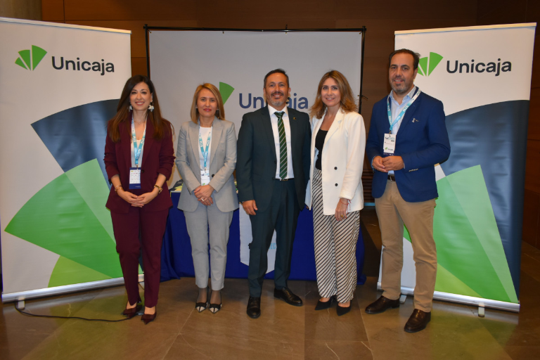 El congreso ha contado con la presencia del presidente de la Federación de Asociaciones Inmobiliarias, José María Alfaro, junto a la directiva de directiva de Ai Toledo, representada por su presidenta, María del Carmen Jara. Por parte de Unicaja han asistido la directora territorial Castilla-La Mancha, Almudena Noheda, la directora de zona de Toledo, Mariana Palacios, y la directora y el subdirector de la oficina principal de la entidad en la capital, Celia Rivera y Pablo Orgaz.